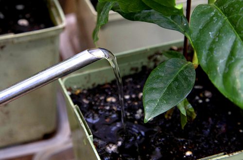 - Monitor soil moisture more closely. Sometimes a dry surrounding environment can suck moisture out of the soil so fast that it’s completely dry before you know it. Try not to let this happen. While you do want to water a bit less often in winter, you don’t want to dry out a coffee plant either. So check the soil moisture more frequently in winter and adjust the watering as needed. For more, see my post on proper watering of a coffee tree in a container.