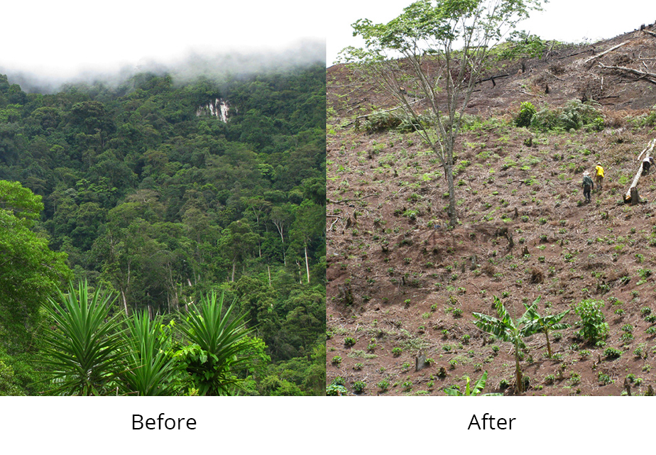 Every year, in Central America alone, more than 16,000 acres of forest is used to dry our coffee and consumers are largely unaware. Above, is a typical woodpile used for drying coffee that’s harvested from nearby tropical forests. And it’s not just woodpiles being used to process our coffee. Primary forests are being cleared, even in the high elevation mountains, to grow coffee out in the open where it’s exposed to pests and requires pesticides and chemical fertilizers, and these high elevation tropical forests are the some world’s most important remaining biodiversity hotspots.